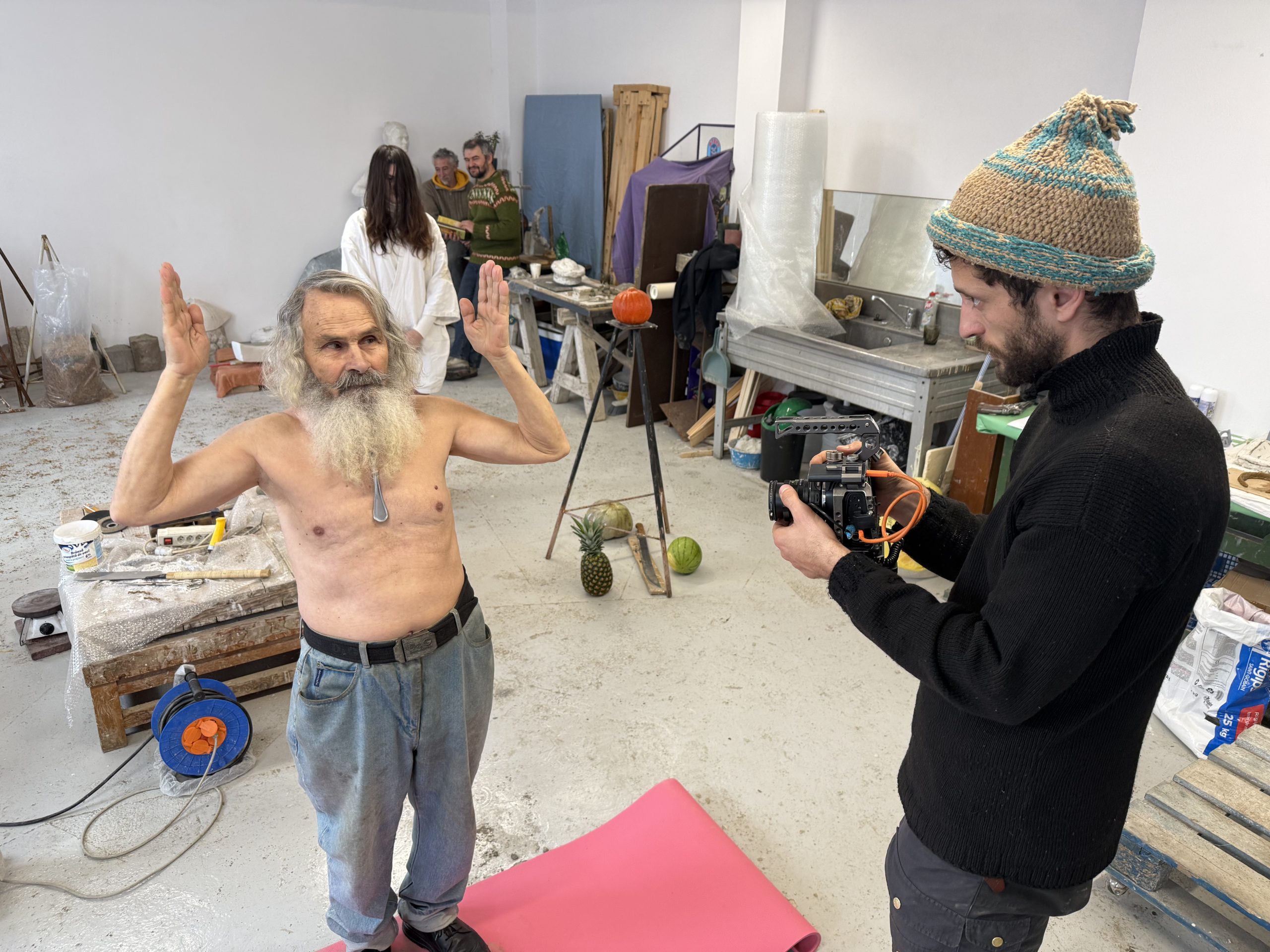 A felmosóval megtisztulás jelét padlóra rajzoló másik résztvevő poétikusan viszonyul a lelki jelenségek problematikájához, míg a #Ringu filmből, kútből kimászó arc nélküli női szereplő a reményt kínálja fel a kollégájának a színes tökök, dinnye és ananász, az élet édes oldalának példázataként. Ezek darabjai nem teljesen illeszkednek egymáshoz, a forma nem passzol. Az öreg önképző alkotó életének talán egyik legnagyobb sikere is lehetne a mellén megállított kanál.